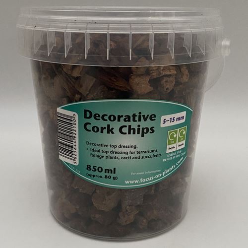 Decorative Cork Chips 5.15mm. Ideal top dressing for terrariums, foliage plants, cacti and succulents 850ml (approx. 80g)
